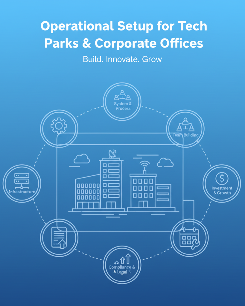 Once land or property is acquired, setting up a fully functional office, tech park, or corporate facility is critical for smooth business operations. For both Indian and foreign companies, this process can involve multiple vendors, infrastructure planning, compliance checks, and operational readiness.