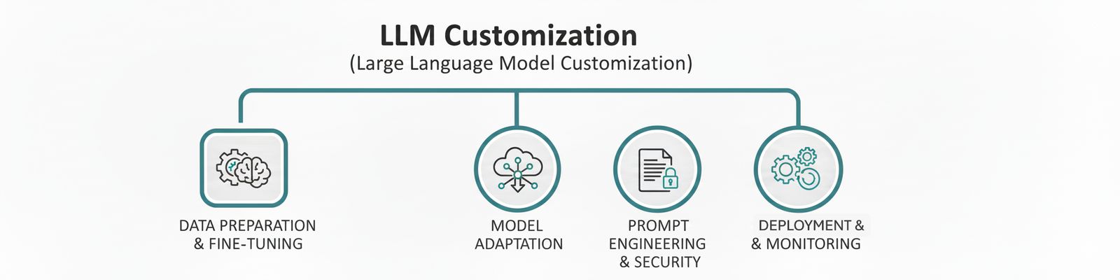 LLM Customization is the strategic process of adapting a generalized Large Language Model (LLM)—like GPT, Llama, or Claude—to a company’s unique domain, data, behavior, and security standards. Since off-the-shelf models lack specific internal knowledge, customization uses techniques like Retrieval-Augmented Generation (RAG) and Fine-Tuning to ground the model in proprietary information. This specialization drastically reduces “hallucinations,” ensures responses adhere to company policies and tone, and transforms a general AI tool into a reliable, enterprise-specific expert capable of automating complex, knowledge-intensive workflows.